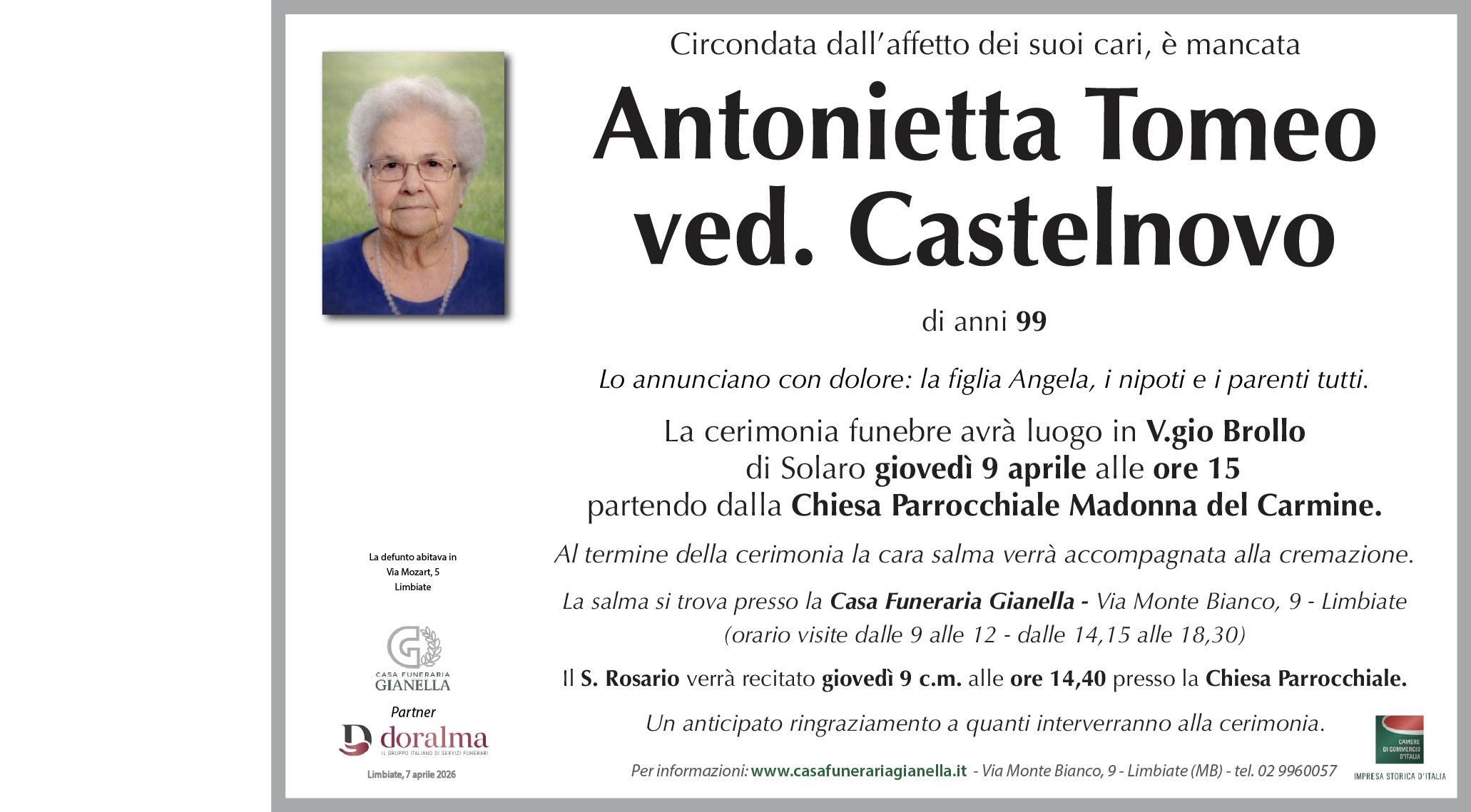 Antonietta Tomeo ved. Castelnovo di anni 99
