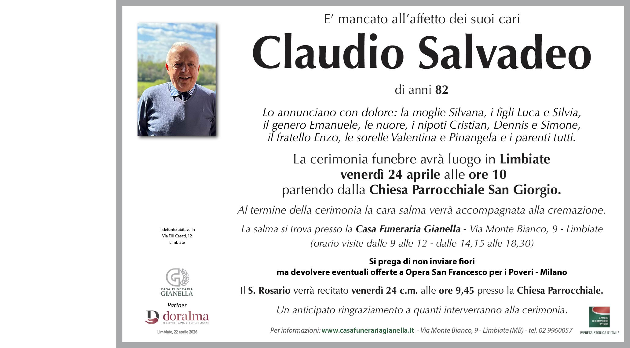 Claudio Salvadeo di anni 82