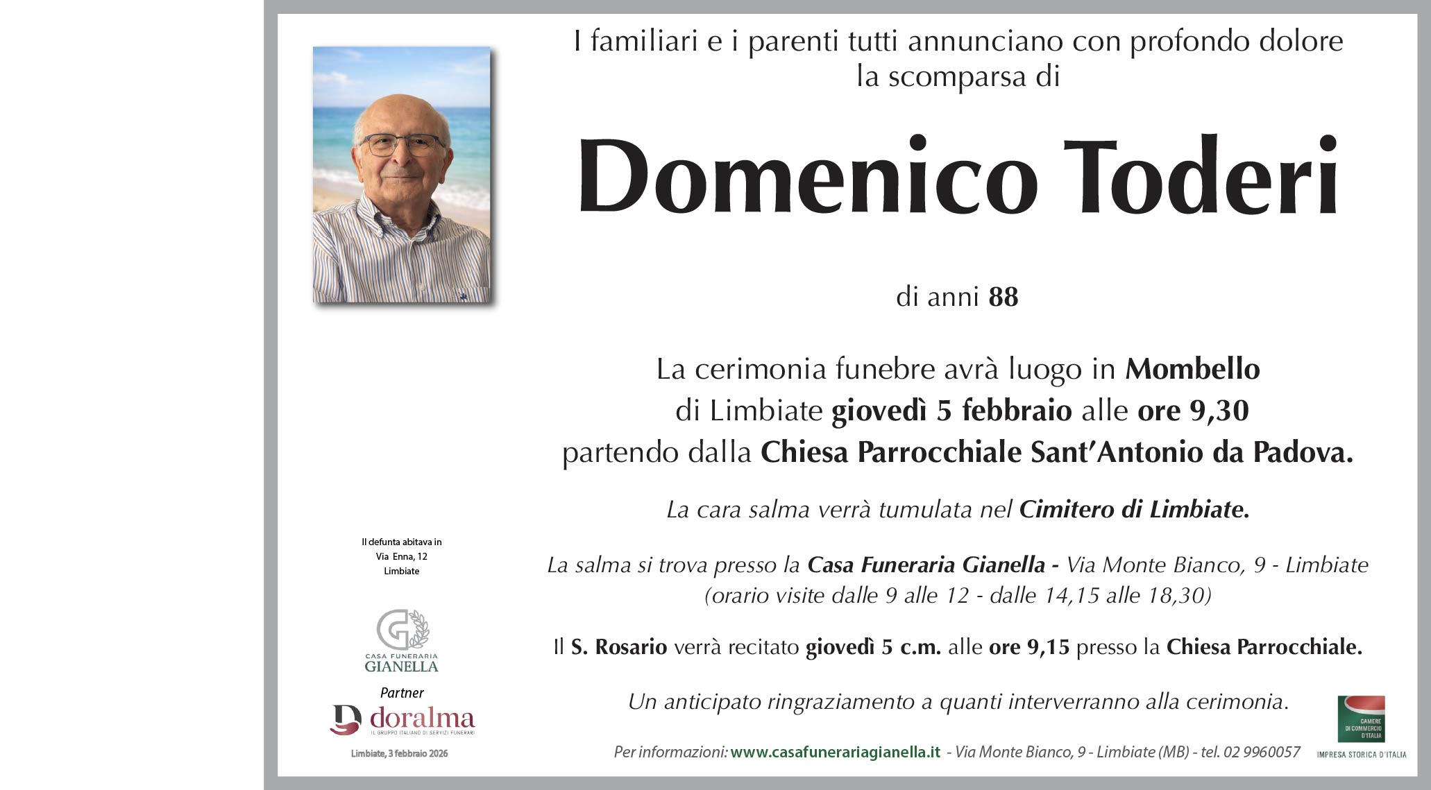 Domenico Toderi di anni 88