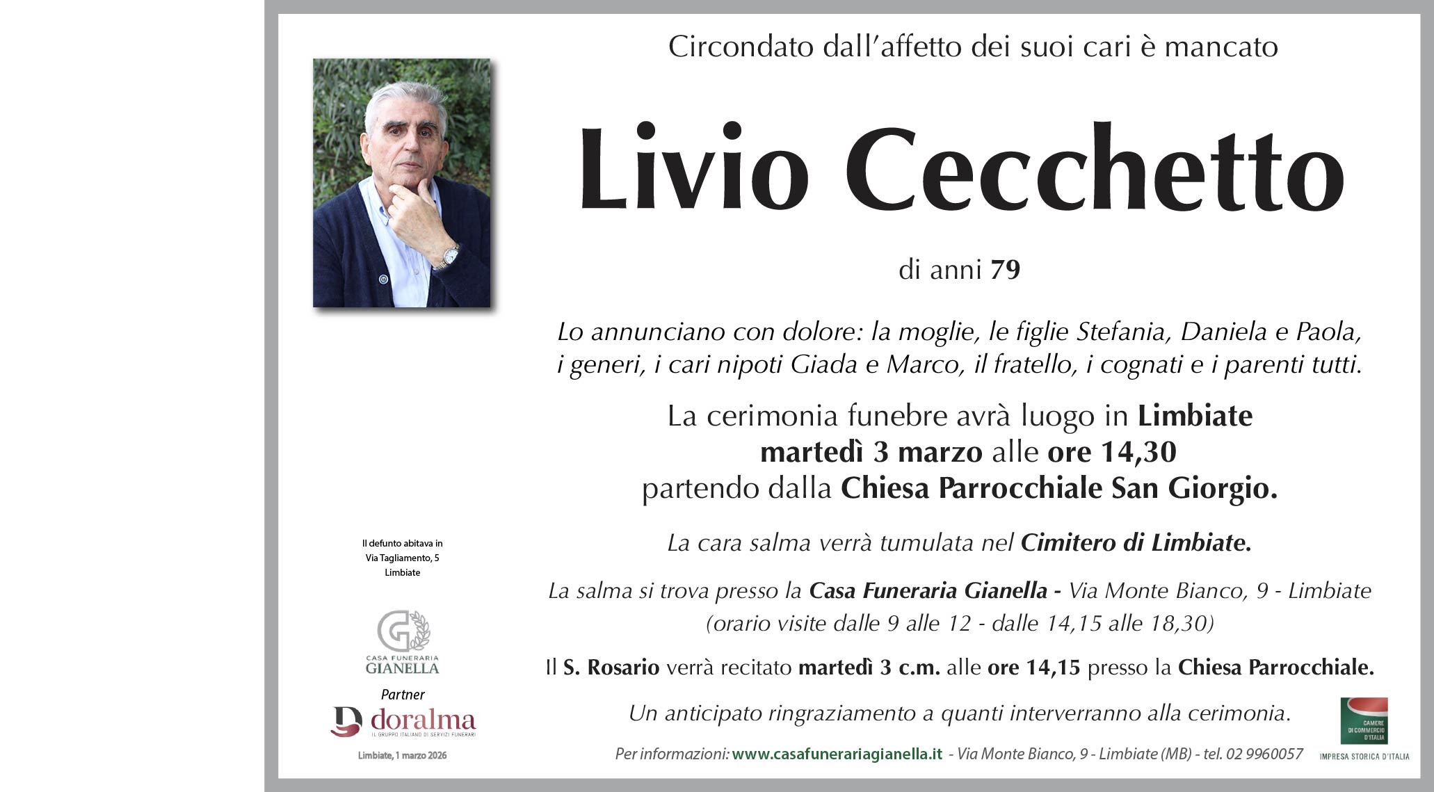 Livio Cecchetto di anni 79