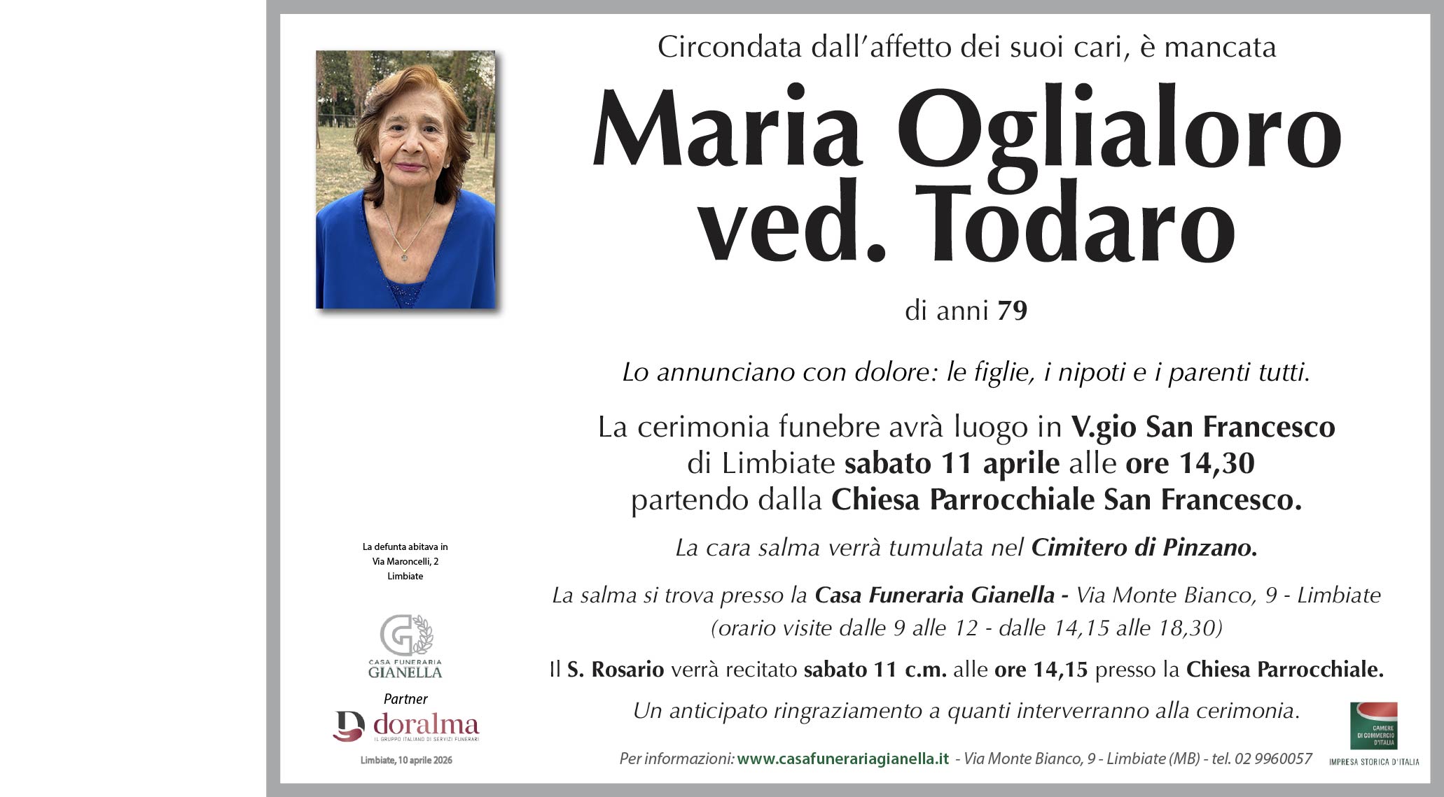 Maria Oglialoro ved. Todaro di anni 79