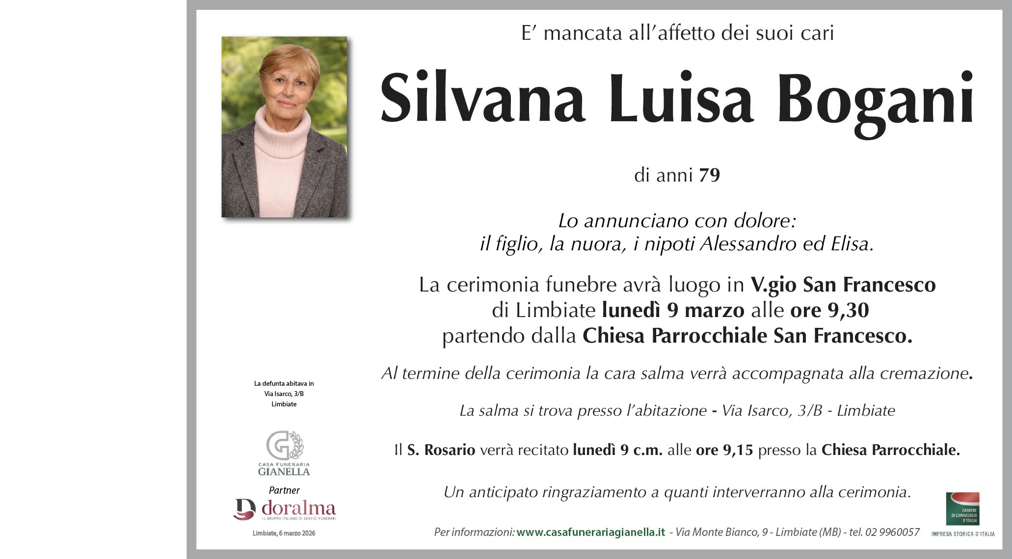 Silvana Luisa Bogani di anni 79